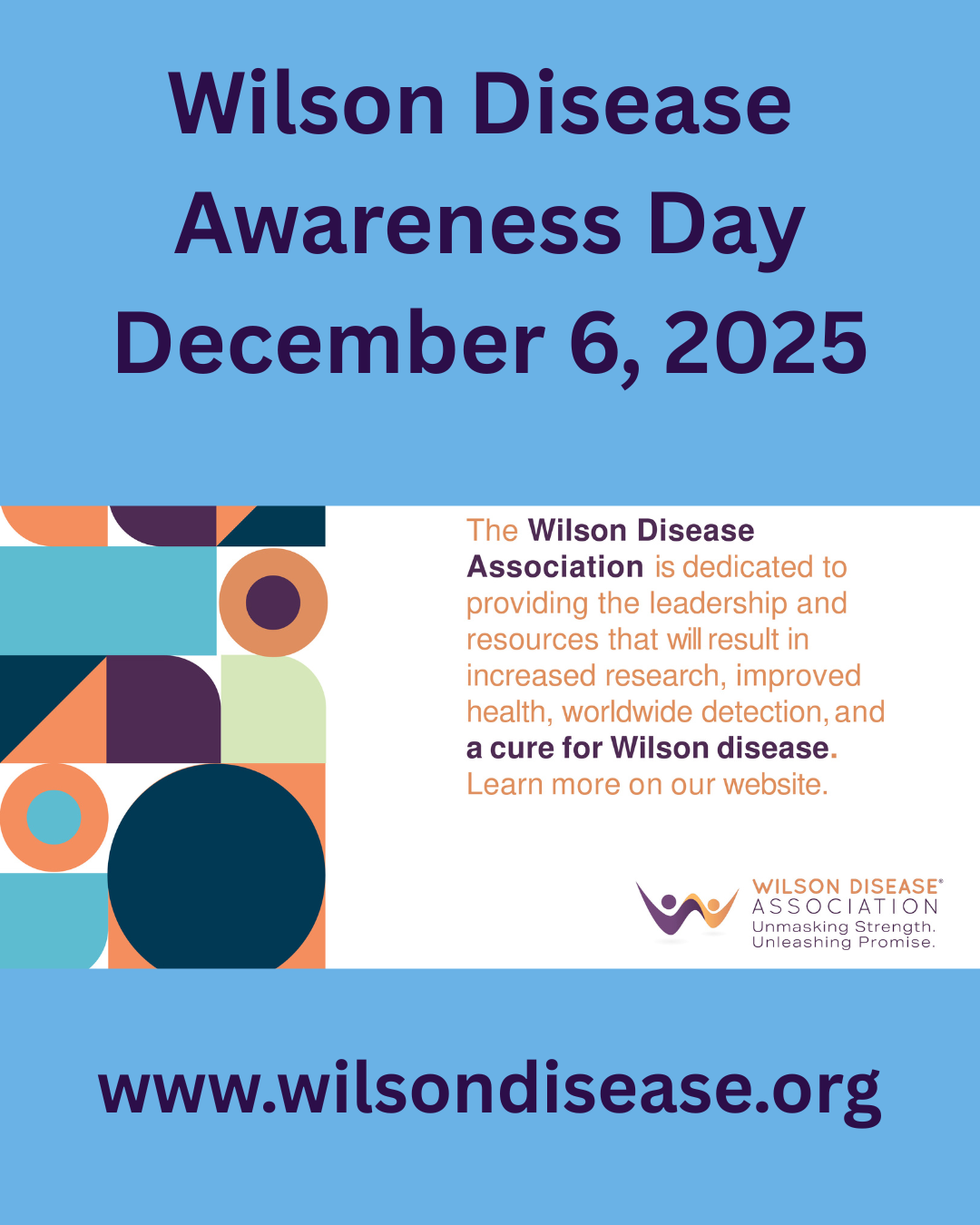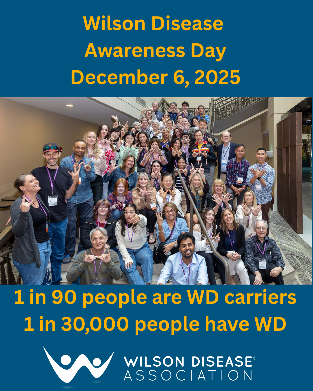 Please show your support for our first Wilson Disease Awareness Day. On December 6, along with the images we created, also post a photo of yourself making a “W” sign for Wilson disease. Share on your social networks and share what your connection is to WD.